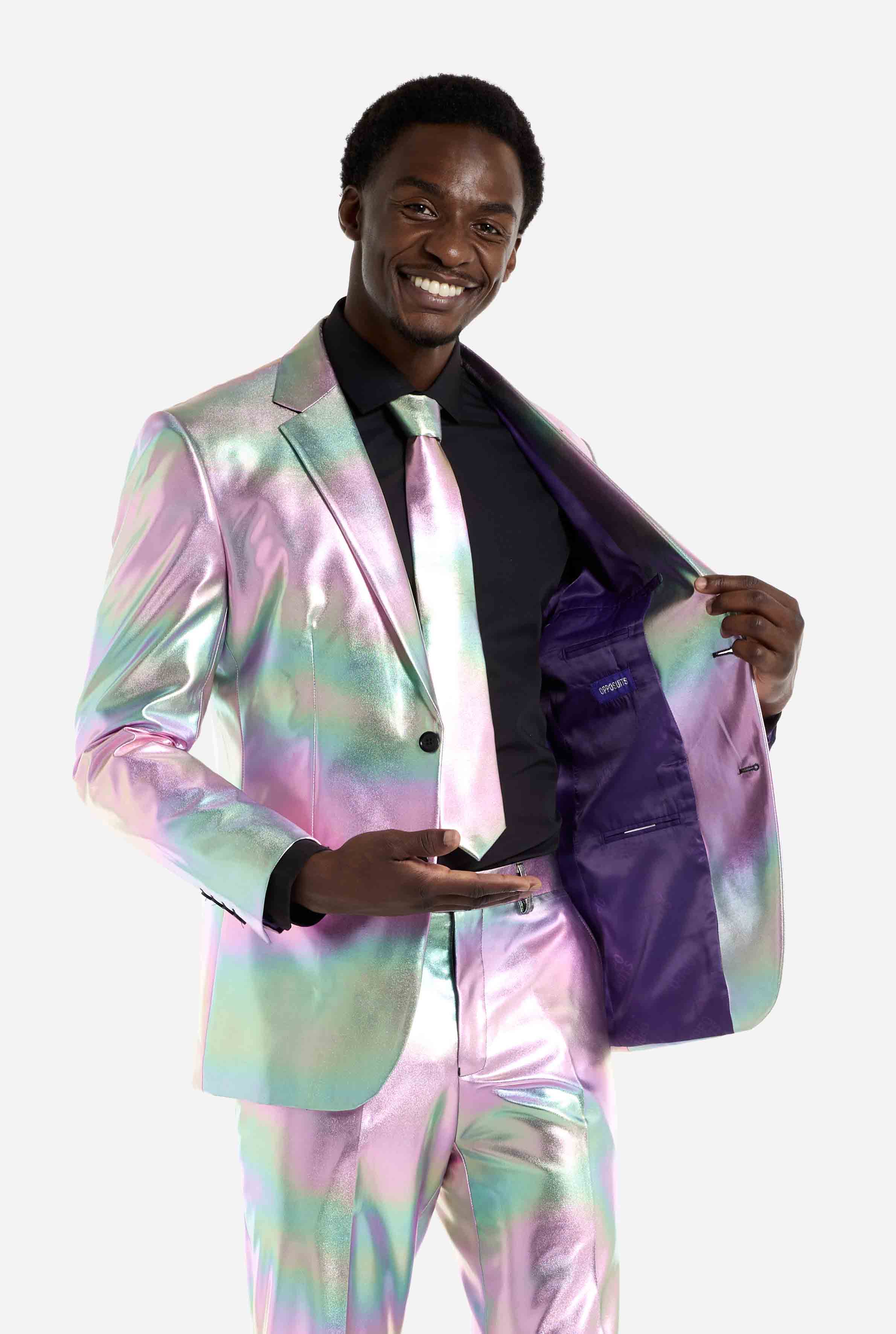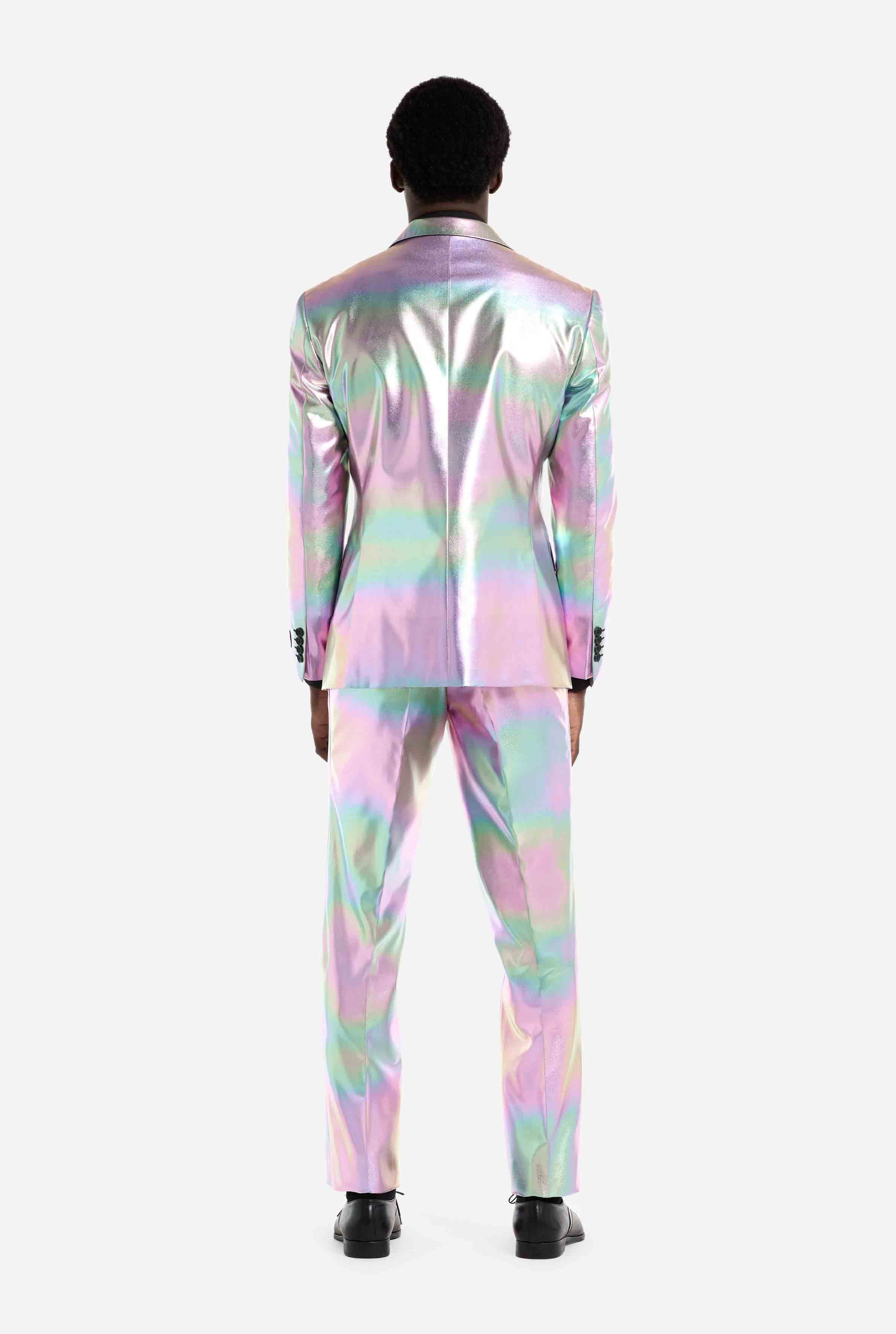 This iridescent suit is designed for those who value subtle impact and confident style. Modern, elegant, and unmistakably distinctive, perfect for standout moments without excess.