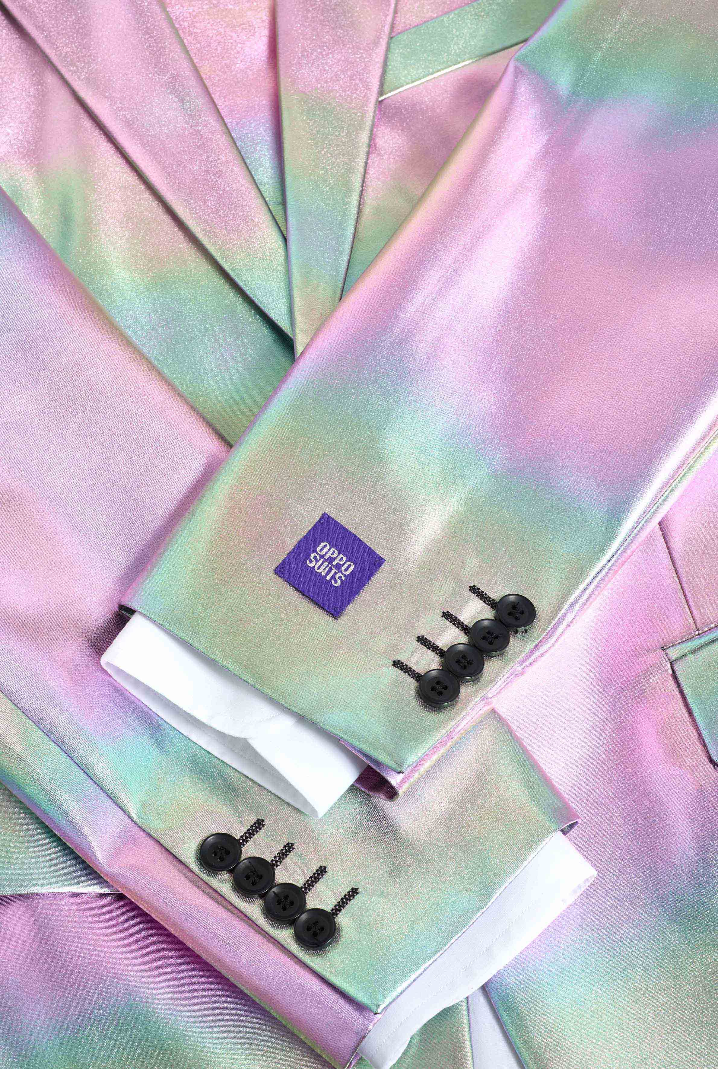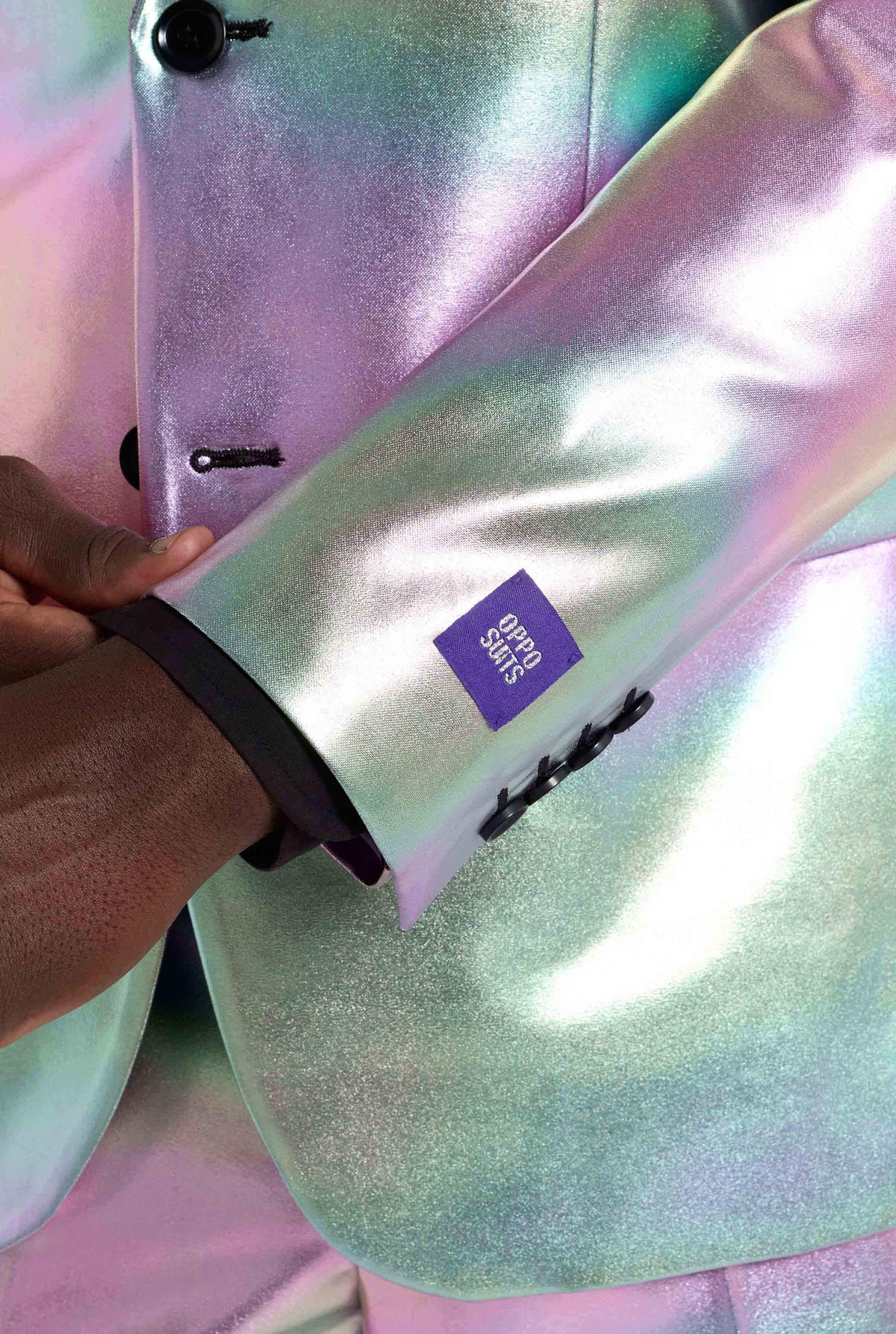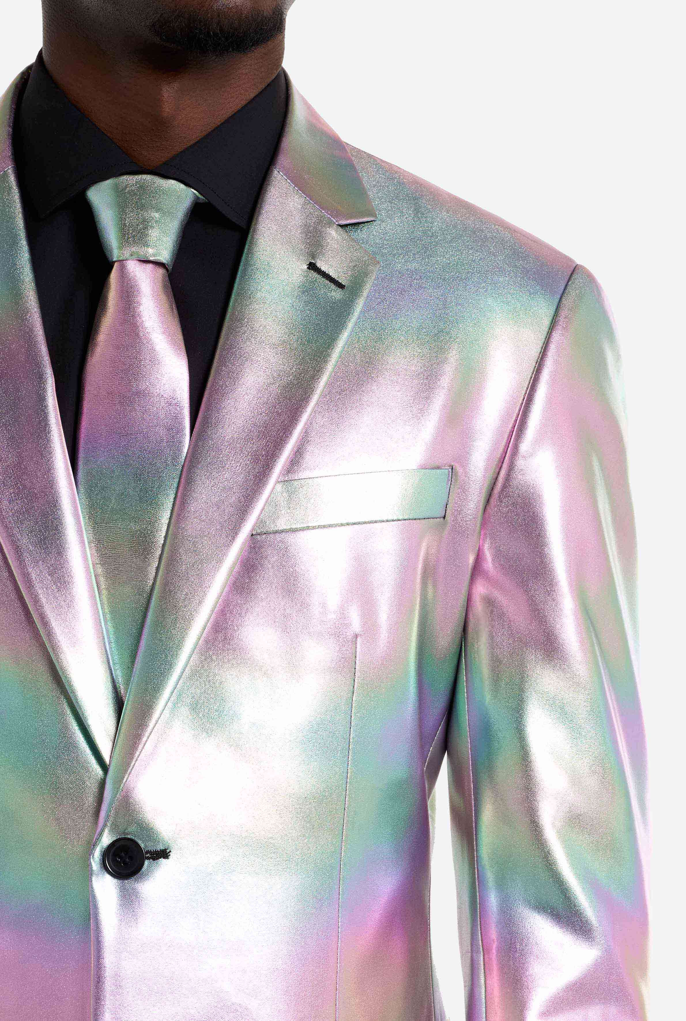 Add a modern twist to formalwear with this refined iridescent suit. Designed for those who appreciate detail over excess, this suit features a soft pearlescent finish that catches the light without overpowering your look. Elegant, distinctive, and confidently understated, perfect for contemporary occasions.