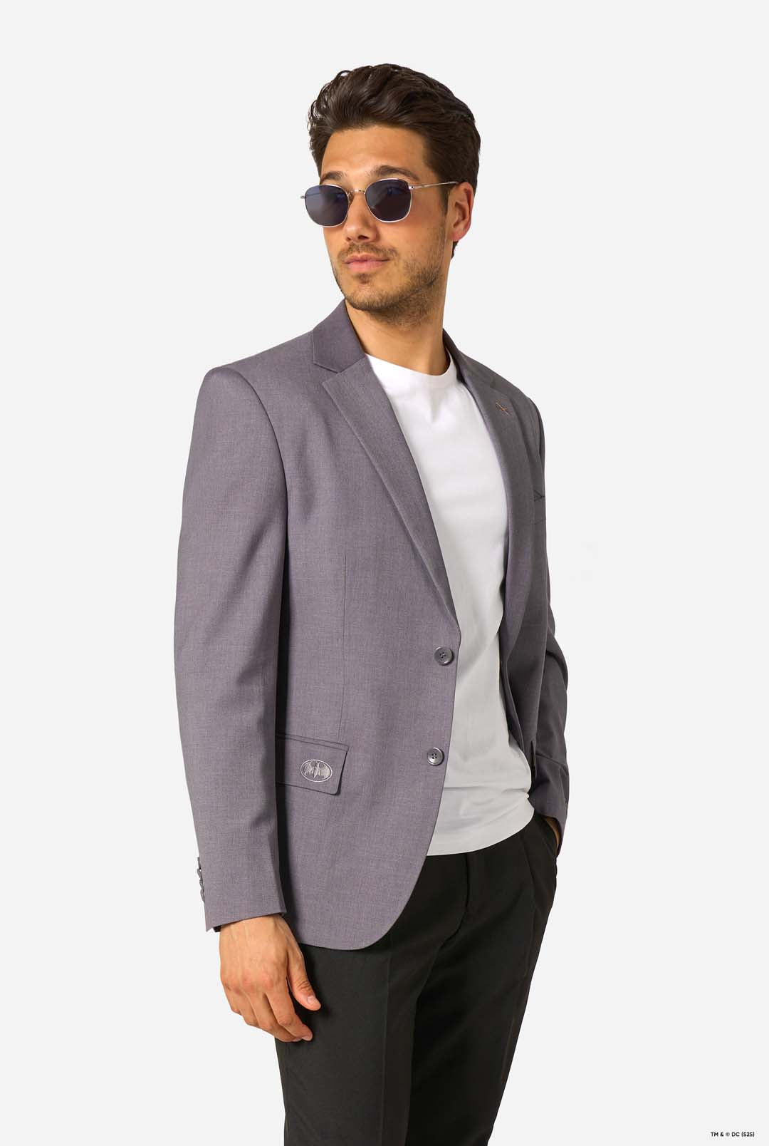 Refined on the outside, unmistakably Batman within. This officially licensed Batman blazer pairs a sophisticated grey look with a subtle inner lining that pays tribute to Gotham’s iconic vigilante. It’s a distinctive, tailored essential with a quiet nod to the Dark Knight.