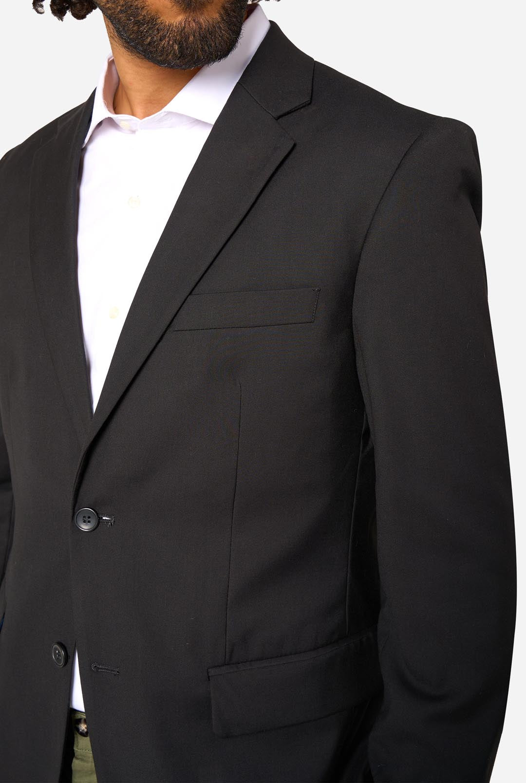 The OppoSuits Daily Black men’s blazer is a refined essential for evening occasions and formal settings. The deep black finish creates a sleek, authoritative appearance suited to smart events and tailored dress codes.