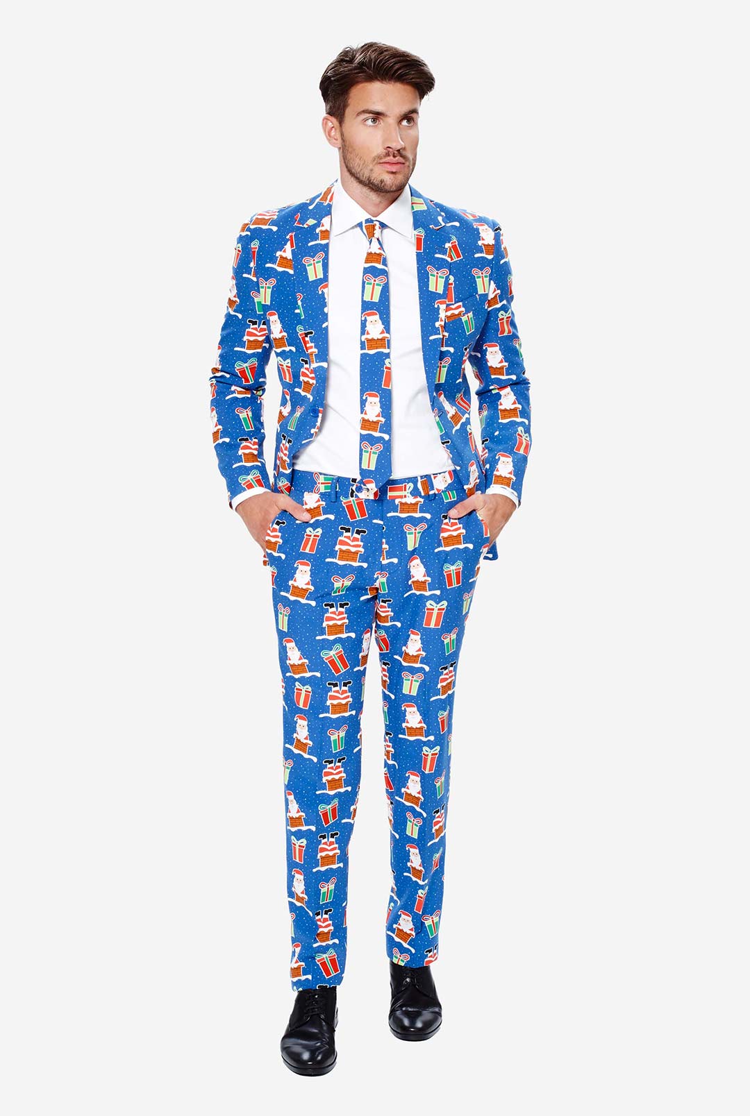 You don't need to search for the perfect Christmas gift this year. Simply wrap yourself in this stylish blue suit featuring Christmas gifts and Santa, and your look is the best gift there is. It's the perfect novelty piece to steal the show on any wintry occasion.
