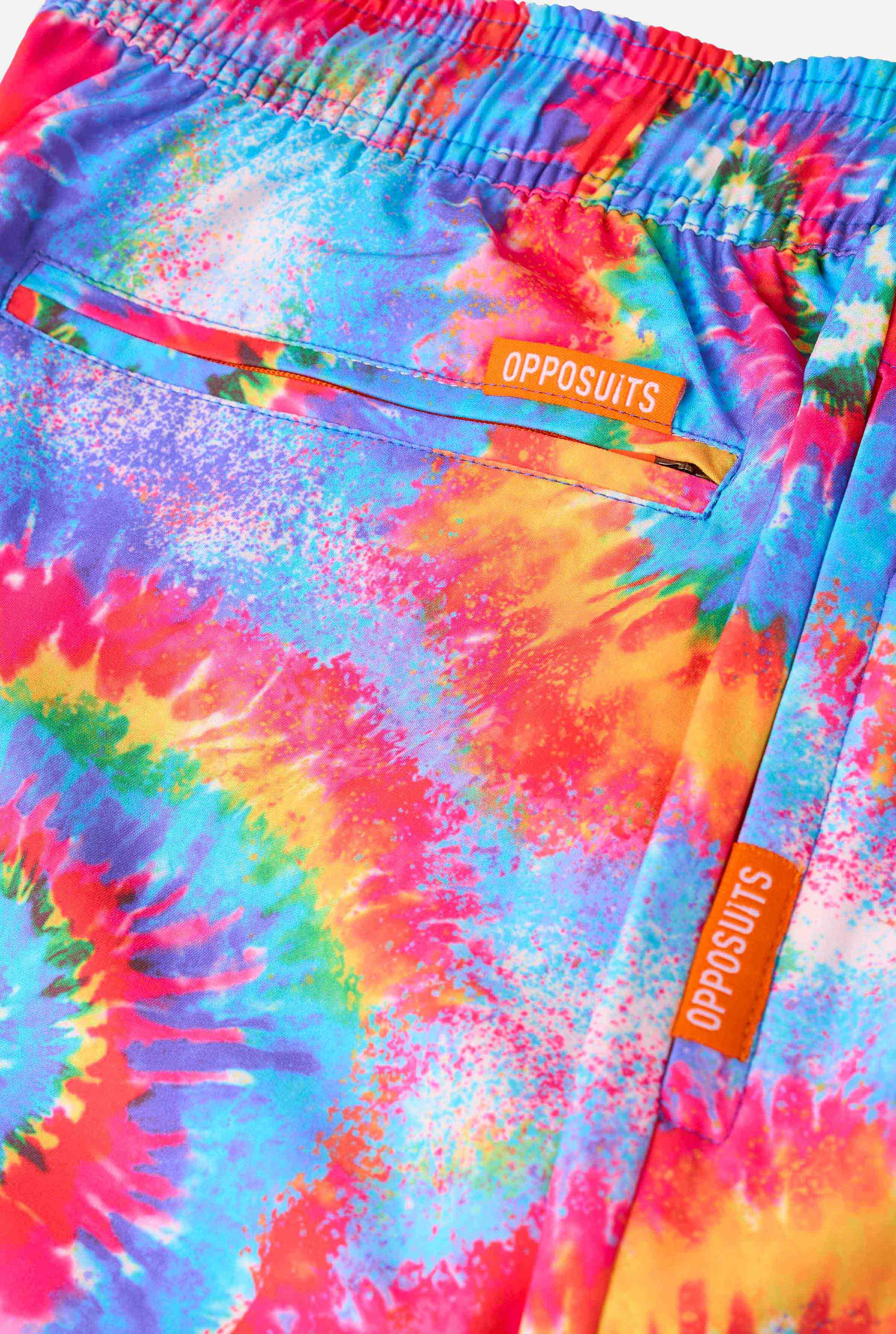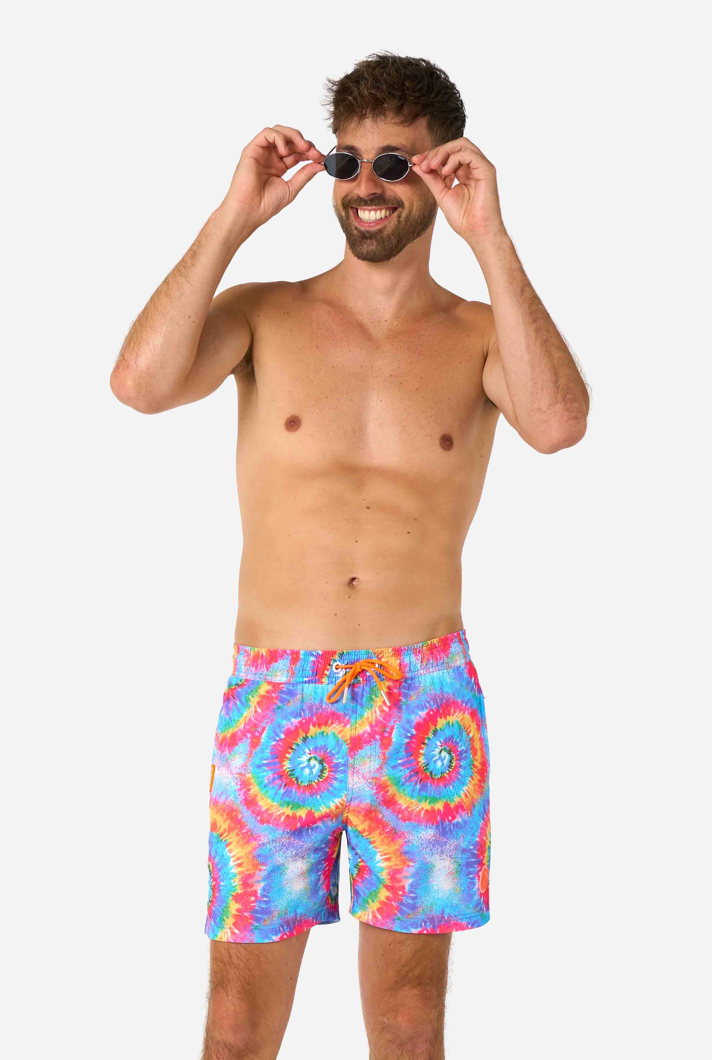 Tie Dye Swim Shorts are a groovy mix of colour and chill, perfect for fun days under the sun.