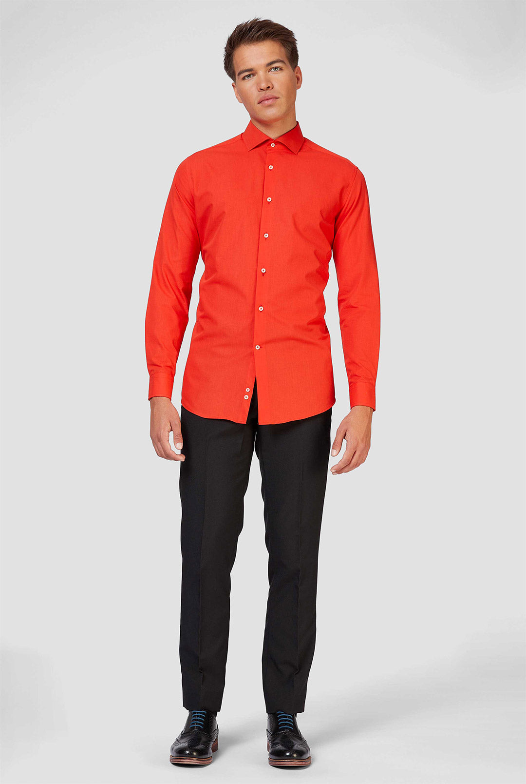 Do you like to add some color to your wardrobe? This red dress shirt for men is all you need. It’s not only festive, it also has a modern fit and is specially designed to wear with a suit, to make it as good-looking and comfortable as possible. Besides, many suits can be combined with this red button up shirt, from basic ones to suits with colorful prints. So if you dare to combine your suit with this striking red shirt for men, you should definitely do it!