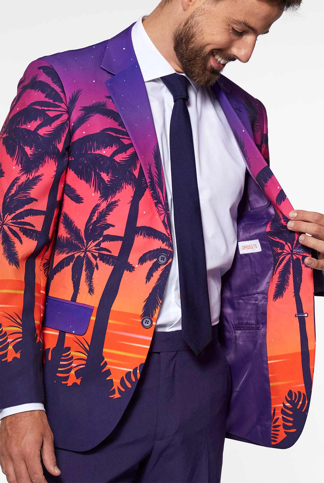 • Man wearing Suave Sunset Hawaiian men's suit