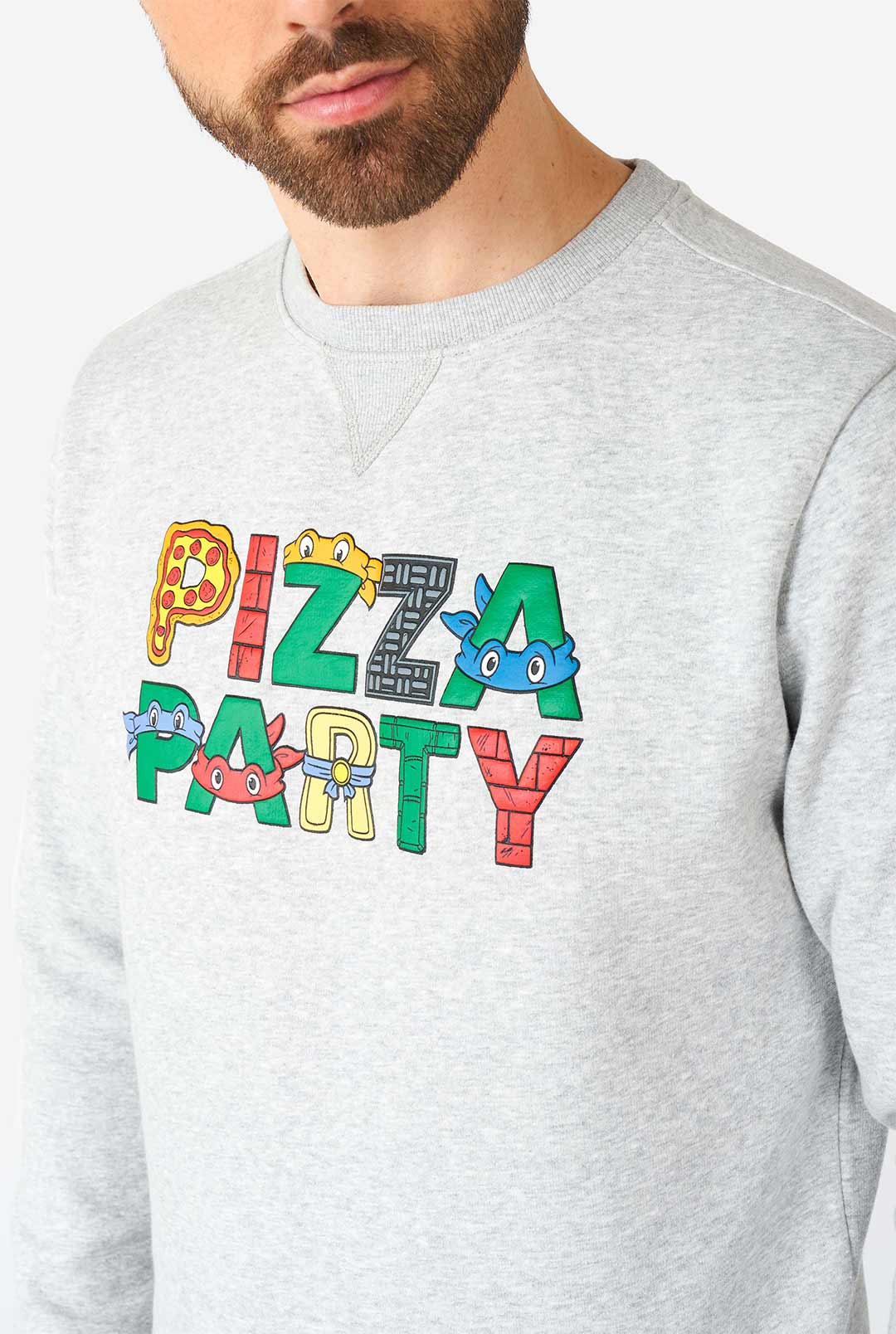 Cowabunga, do we have a sweater for you! Pizza Party time is wherever you go with the Teenage Mutant Ninja Turtles sweater. Because, everybody knows there's no party like a Ninja Turtle Pizza Party. This sweater is for fans new and old who love to grab a slice and show there dedication to the Turtles. Become a true Ninja Brother and set yourself up to fight the Foot in style with the officially licensed TMNT™ Pizza Time sweater.